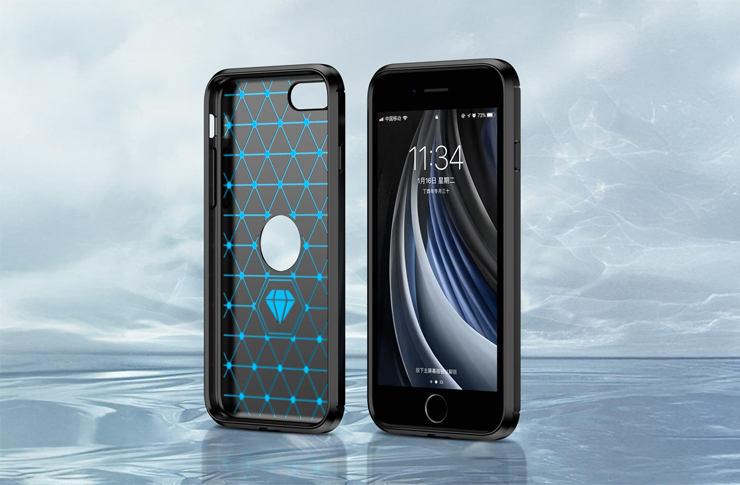 issinのiPhone SEケースは、スタイリッシュなカーボン調デザインと薄型・軽量設計で快適な使い心地でありながら、カメラやデバイス全体をしっかりと保護する、高い機能性を備えています。